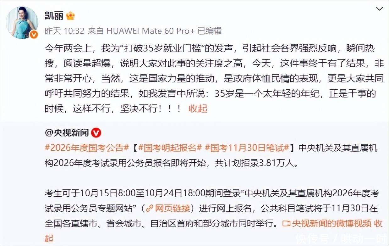 仅仅七个月后,国家公务员局正式宣布:报考年龄上限由原来的35岁调整为38岁。这项政策变革被视为她“为民请命终获回应”的有力证明。尽管决策背后凝聚多方努力,但人们普遍相信,这位“国民妈妈”的呐喊加速了改革的到来。